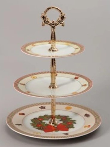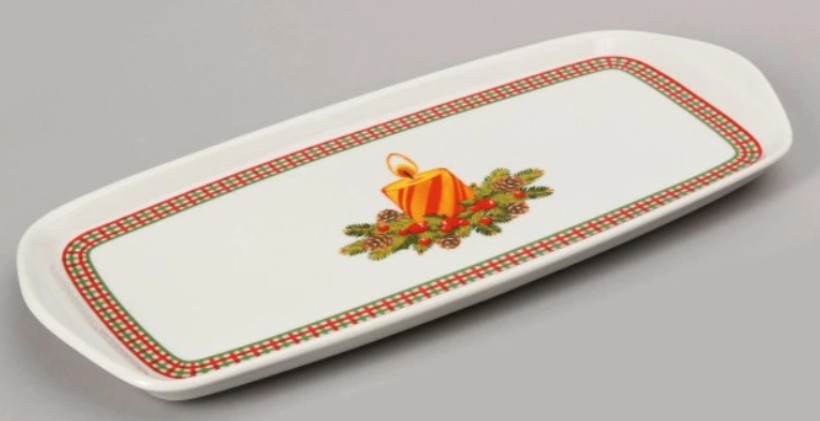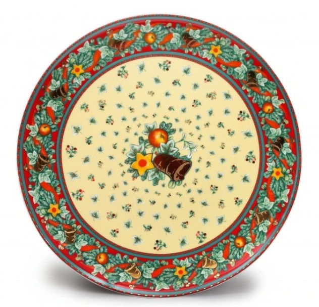 Velká plochá mísa neboli servírovací mísa je skutečný skvost. Je ozdobena bohatým vánočním dekorem opět v tradičním barevném provedení. Tato mísa rozhodně upoutá pozornost. Jakékoli cukroví či chlebíčky na ní budou vypadat dokonale. A vejde se toho na ní opravdu hodně, má totiž průměr 31 cm.