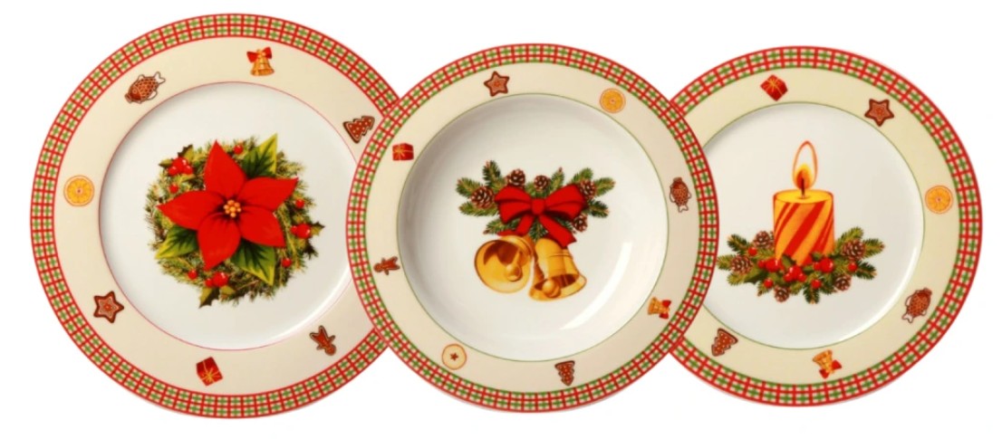 Kapr nebo řízek? To necháme na vás, ale co vám rozhodně můžeme doporučit je talířová souprava z kvalitního českého porcelánu s typickými svátečními motivy. V soupravě najdete mělký, hluboký a dezertní talíř, které jsou ozdobené zvonečkem, vánoční hvězdou a svíčkou. Kombinace bílé, béžové, červené a zelené je parádní. Talíře snadno zkombinujete s minimalistickými dekoracemi a dalším porcelánem. Prostřete na štědrovečerní tabuli s novými talíři a užijte si chvíle s rodinou.
