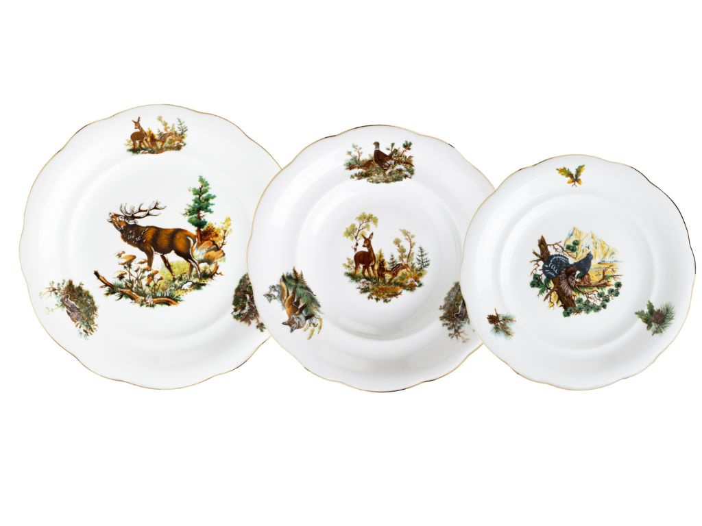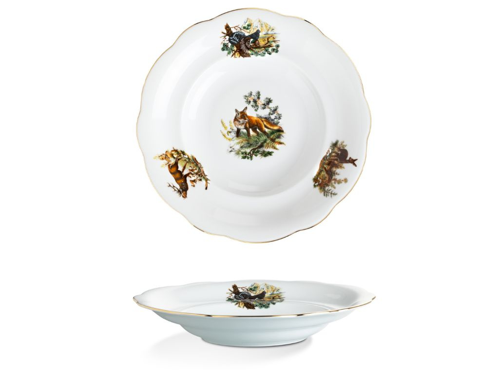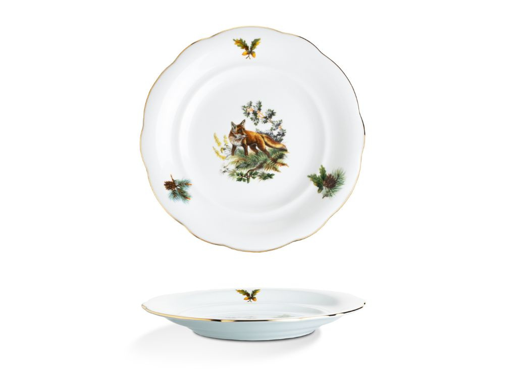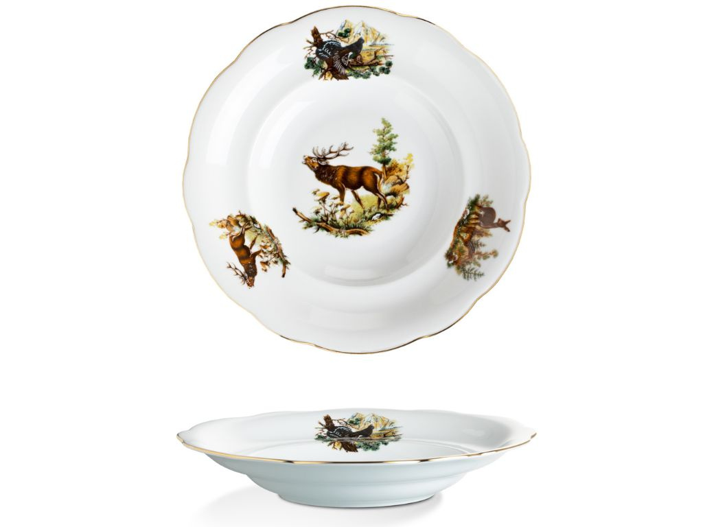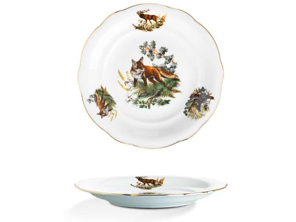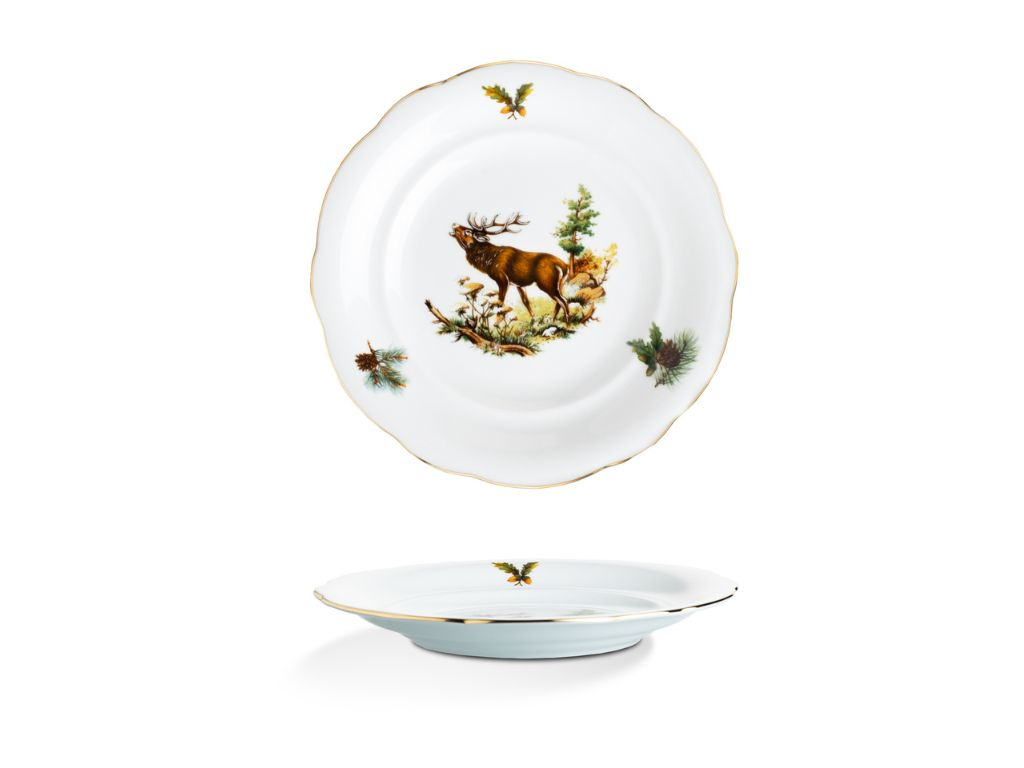Porcelánová talířová souprava Mary-Anne pro 6 osob je ideální volbou pro milovníky přírody. Porcelán je zdobený loveckými motivy, které zachycují krásu a majestátnost lesních zvířat. Jemný zlatý proužek na okrajích talířů podtrhuje elegantní vzhled. Tato souprava je perfektní nejen pro stylové stolování, ale i jako jedinečný dárek pro vášnivé myslivce. Na muffiny, cukroví nebo jednohubky se perfektně hodí etažér se stejným designem. Vysoce kvalitní české nádobí zaručuje dlouhou životnost a výjimečnou odolnost.