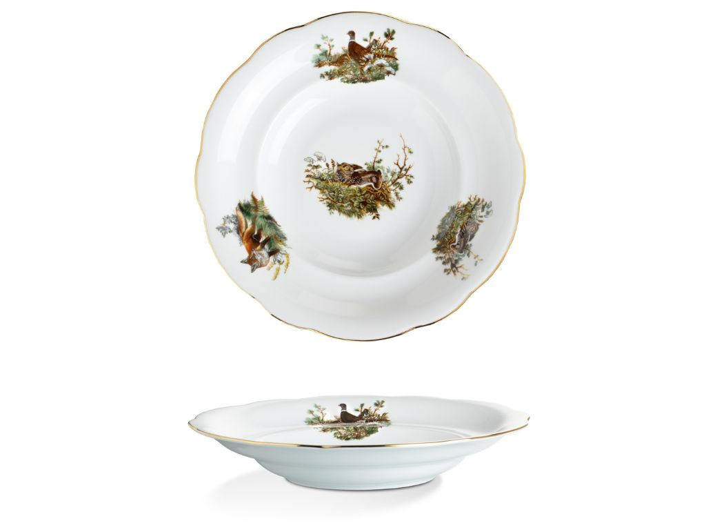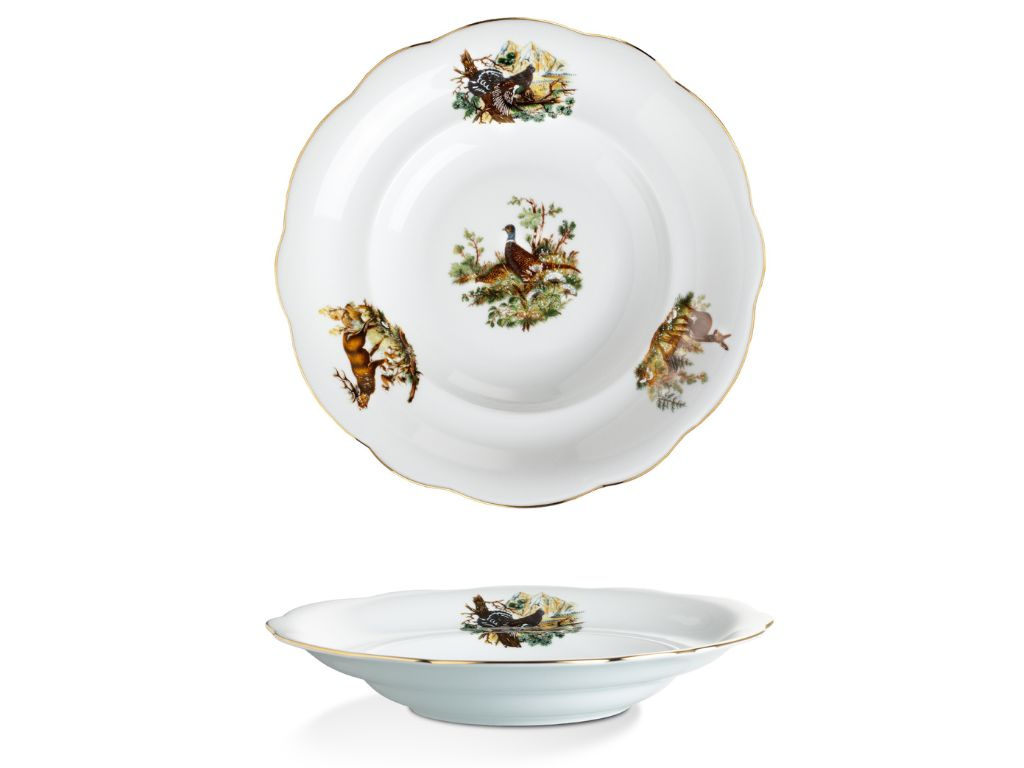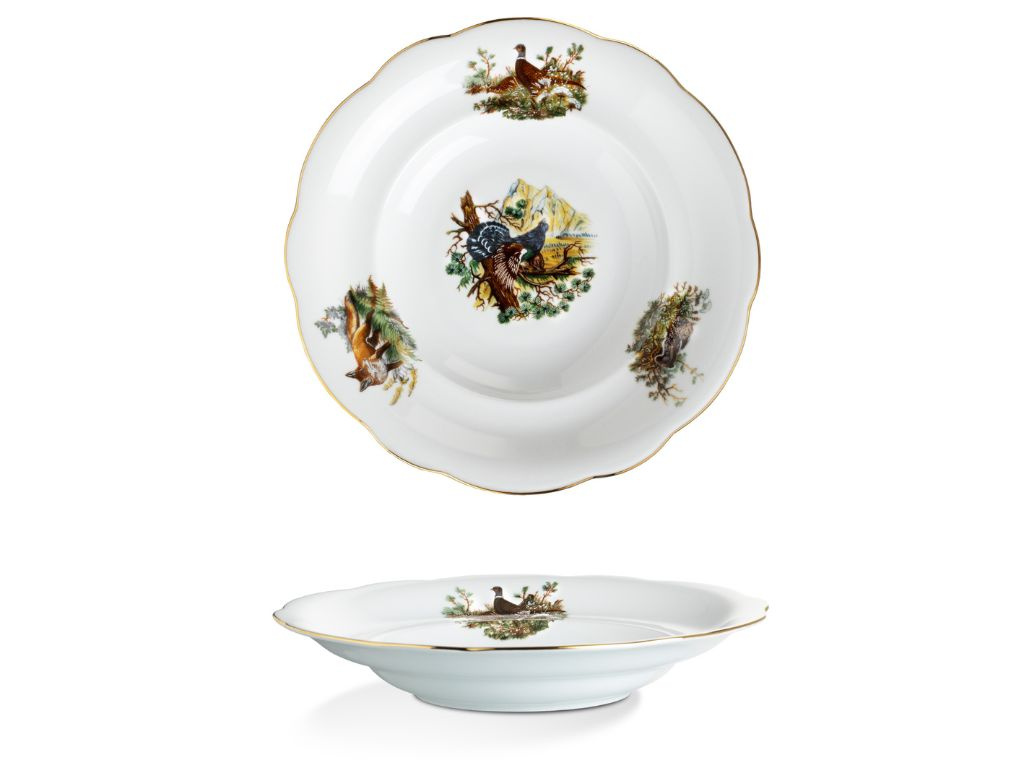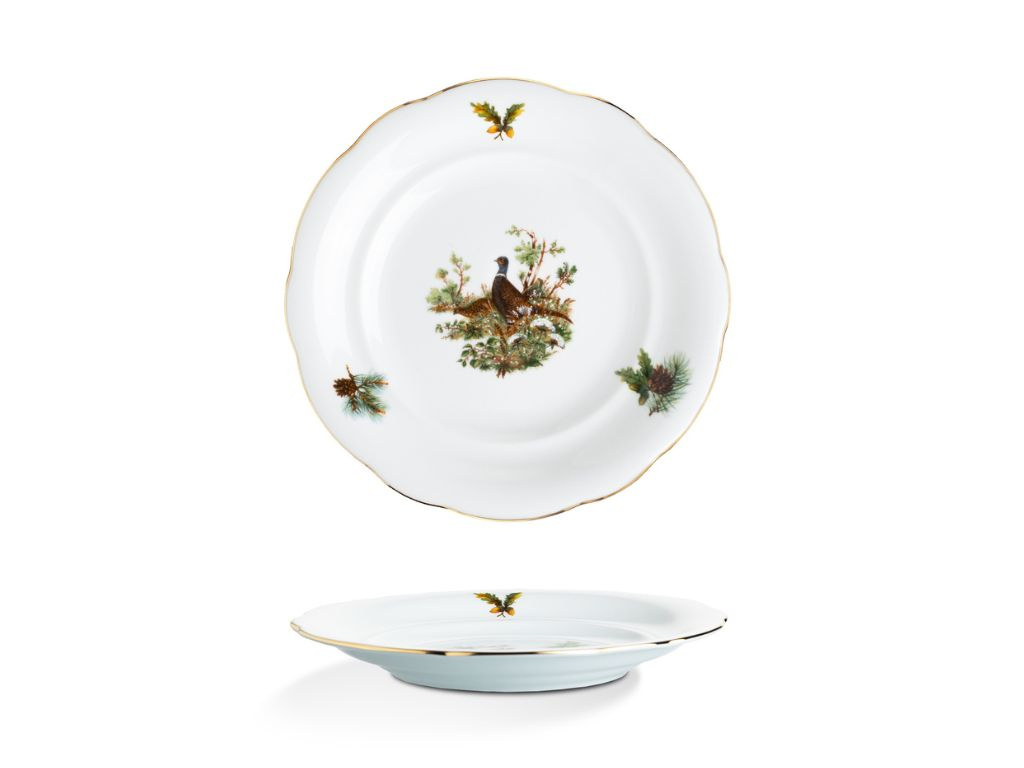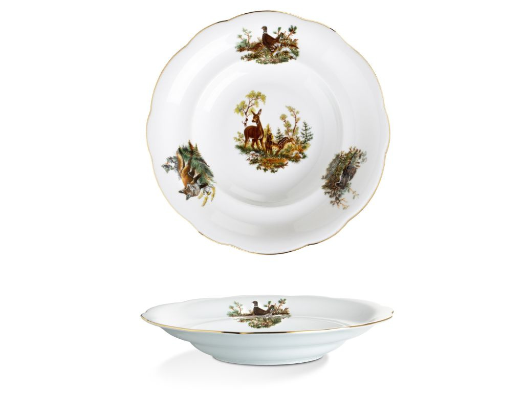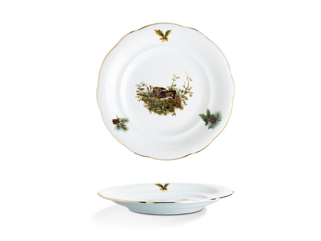 Porcelánová talířová souprava Mary-Anne pro 6 osob je ideální volbou pro milovníky přírody. Porcelán je zdobený loveckými motivy, které zachycují krásu a majestátnost lesních zvířat. Jemný zlatý proužek na okrajích talířů podtrhuje elegantní vzhled. Tato souprava je perfektní nejen pro stylové stolování, ale i jako jedinečný dárek pro vášnivé myslivce. Na muffiny, cukroví nebo jednohubky se perfektně hodí etažér se stejným designem. Vysoce kvalitní české nádobí zaručuje dlouhou životnost a výjimečnou odolnost.