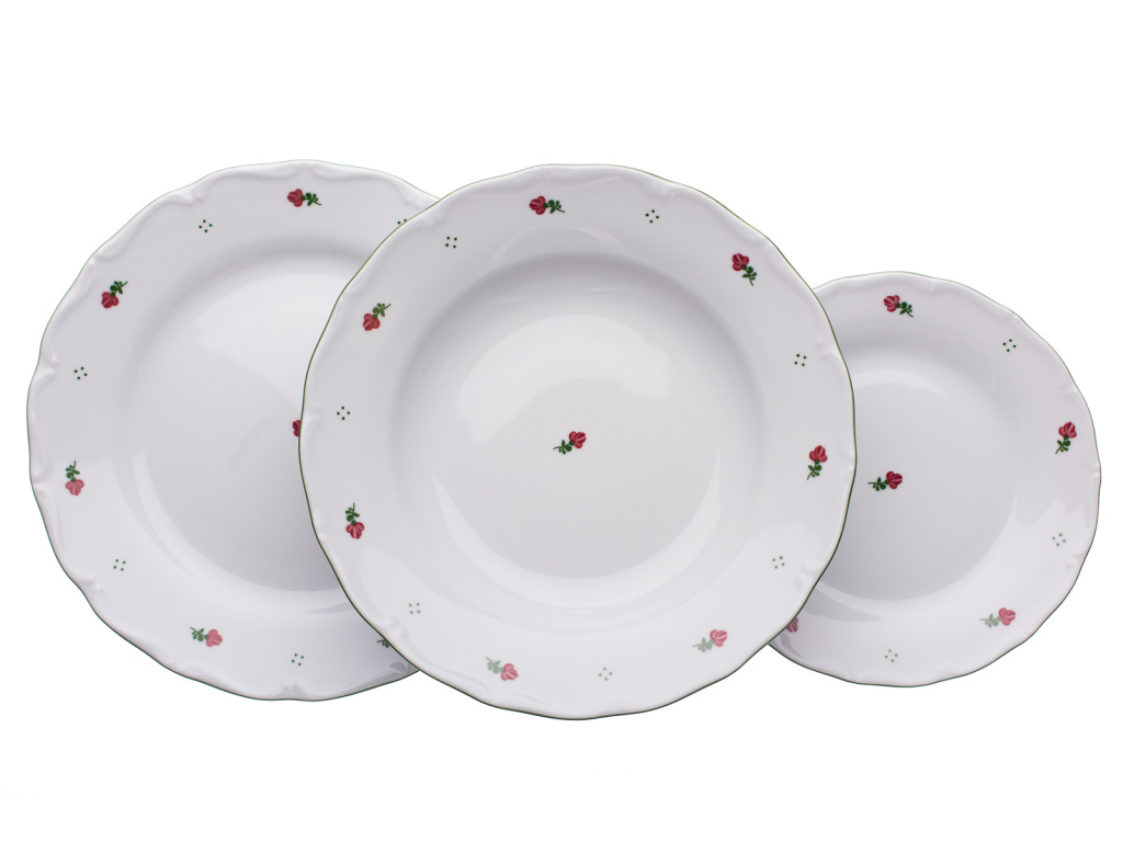 Talířová souprava, Verona, růžové kytičky, 18 d., porcelán G. Benedikt