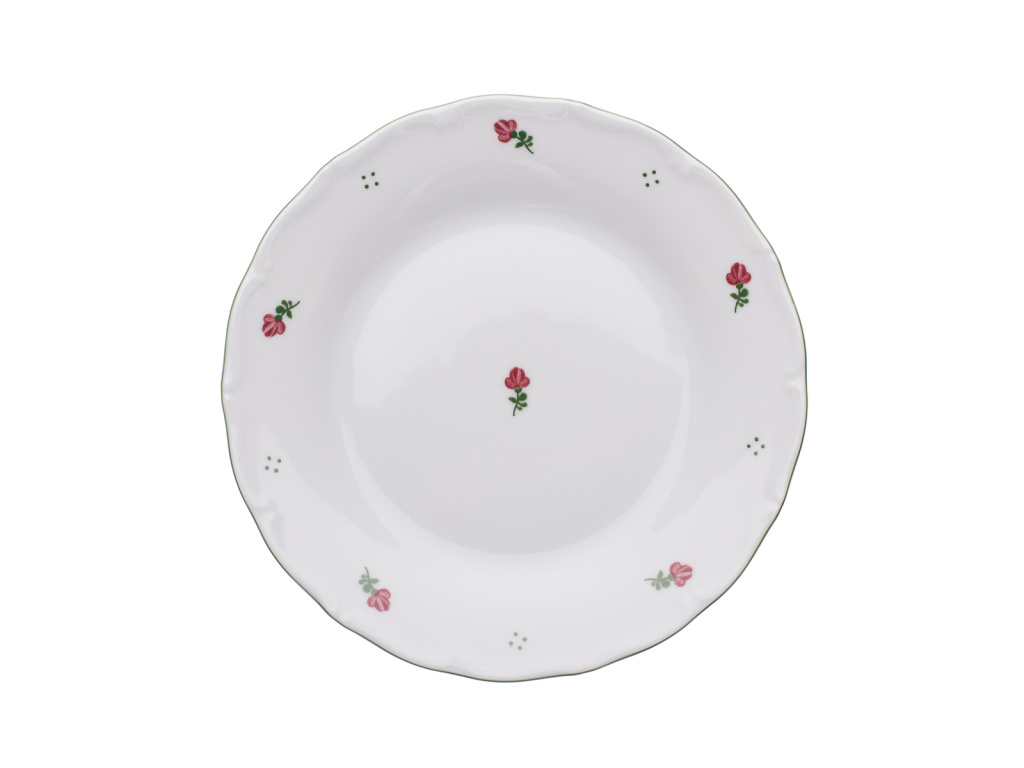 Představujeme porcelánovou talířovou soupravu Verona ozdobenou dekorem růžových kytiček a zelené linky. Nádobí s decentními růžovými květinami skvěle zapadne do rustikální kuchyně. Perfektní volba pro slavnostní příležitosti i každodenní stolování s nádechem venkovské pohody. Ať už podáváte snídani, oběd nebo večeři, každý pokrm bude vypadat jako mistrovské dílo.