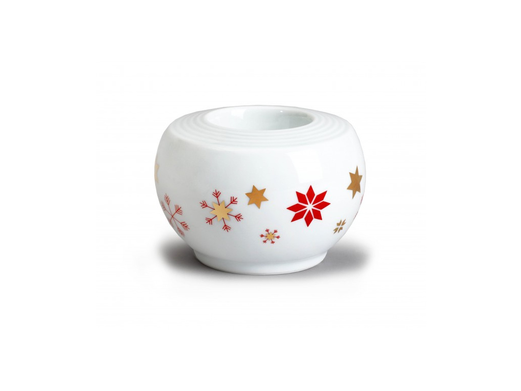 Svícen z porcelánu je ideální dekorace na váš vánoční stůl, poličku nebo jako milý dárek pro vaše blízké! Podívejte se i na další kousky z vánoční kolekce s červeno-zlatými vločkami.