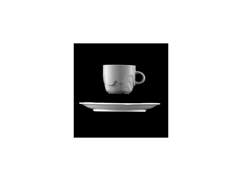 Designový šálek s podšálkem z kolekce Melodie je svou velikostí ideální pro podávání klasického espressa. Tento kvalitní porcelán je vhodný jak do restauračních provozů, tak do domácnosti. Šálek i podšálek jsou odekorovány decentními vlnkami.