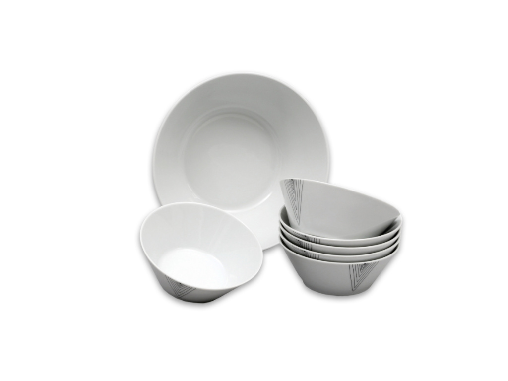 Tom, kompotová souprava, český porcelán, šedé špičky, Thun, 7 d.