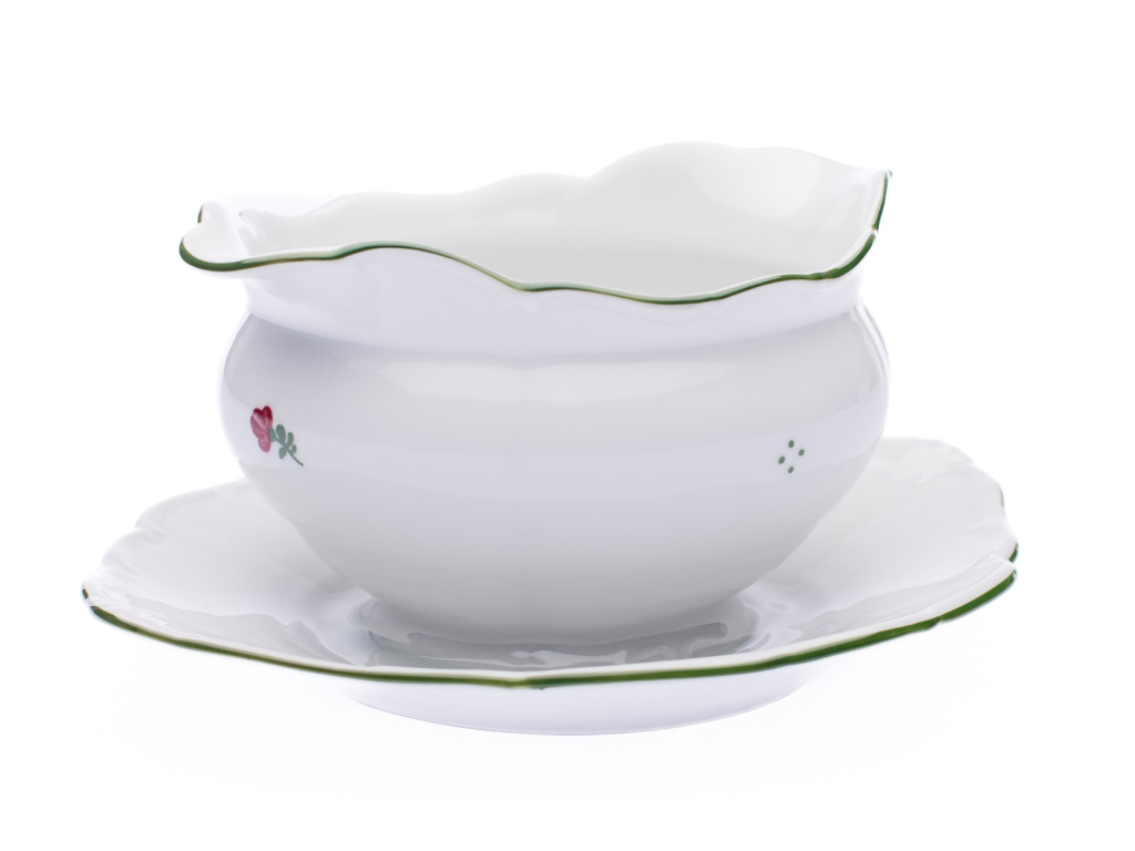 Porcelánový omáčník je doplněk, který využijete téměř při každém servírování jídla. Je praktickým kouskem, který by vám neměl chybět. S dekorem růžových kytiček a zeleným proužkem.