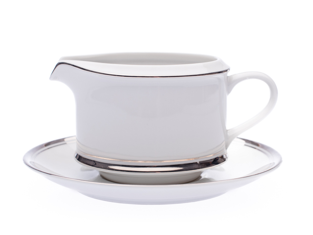 Porcelánový omáčník s podšálkem Sabina s platinovým proužkem.