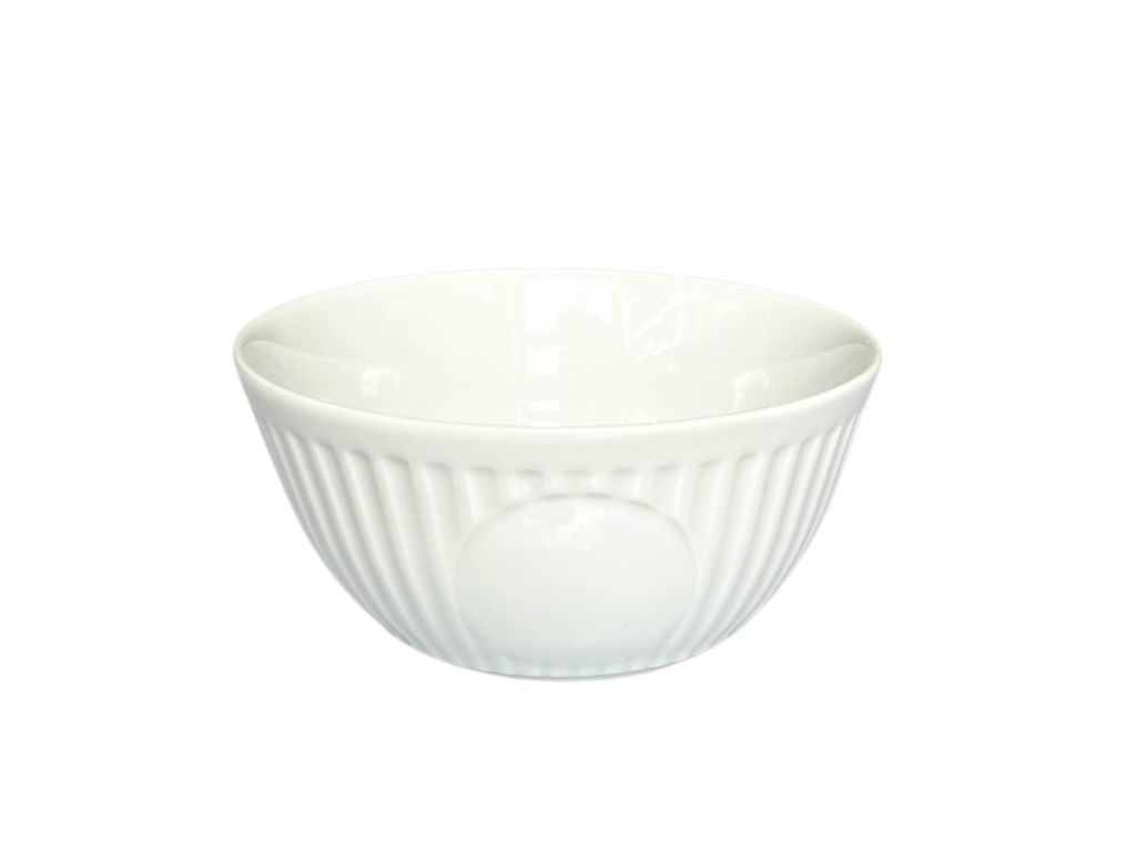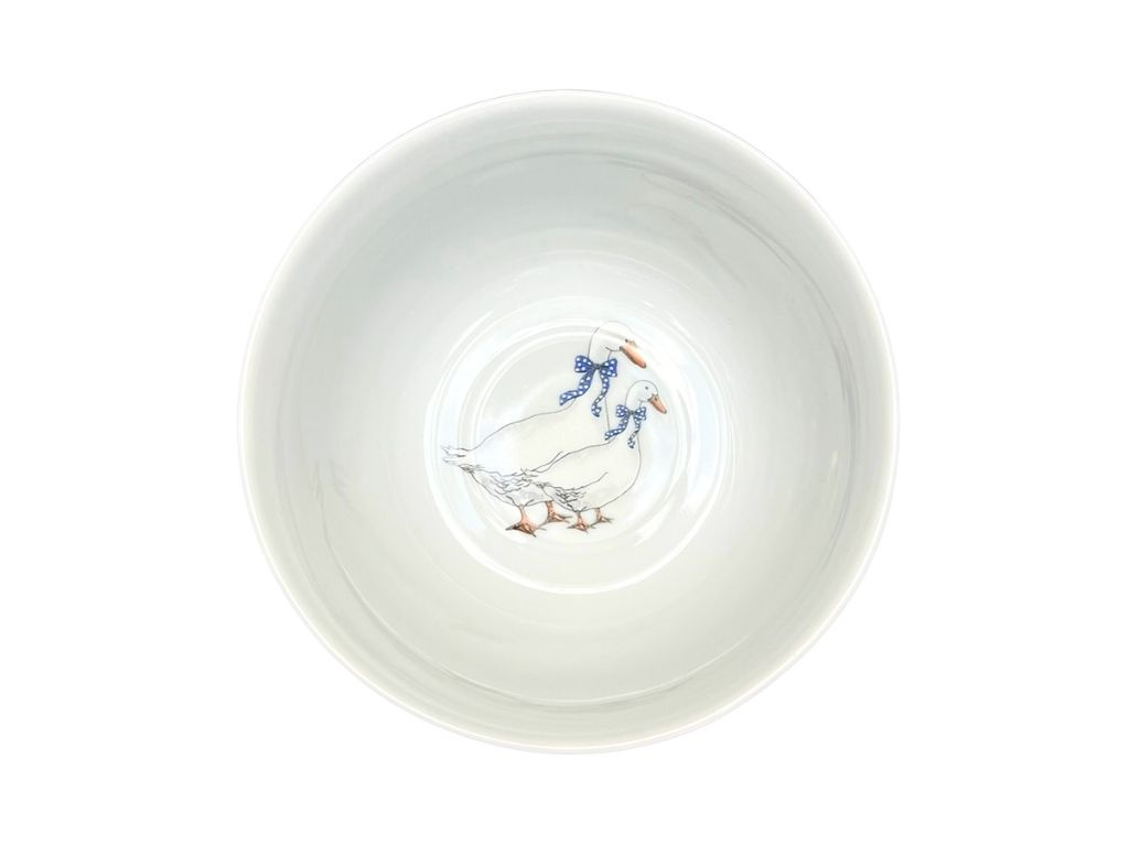 Porcelánová miska Mozart s vroubkovanou stěnou v dekoru hus uvnitř na dně. Ideální velikost a tvar pro ranní müsli snídani. Prvotřídní český porcelán z Dubí.