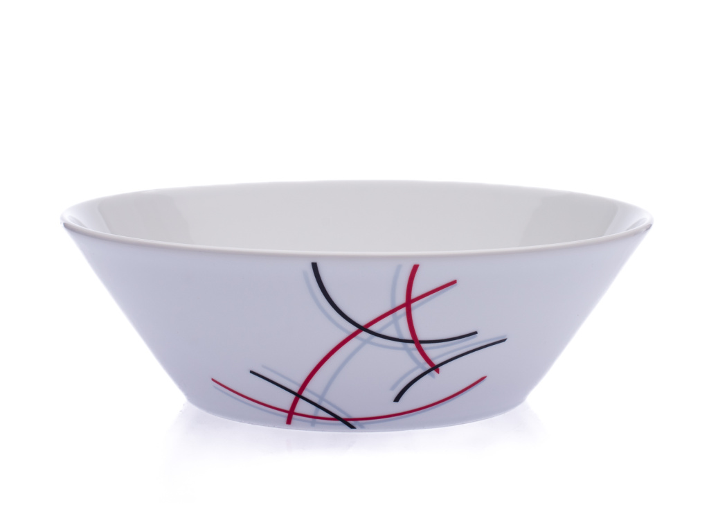 Vneste do svého stolování svěžest a originalitu s touto kompotovou mísou Tom, která zaujme svým moderním tvarem a motivem červených a modrých čar. Velkou mísu využijete na Vánoce na servírování bramborového salátu, nebo v ní můžete zadělávat těsto na oblíbené buchty. V tomto moderním designu koupíte kompletní jídelní servis i talířovou sadu.