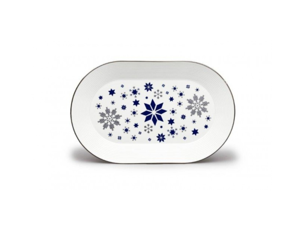 Oválná porcelánová mísa s modrými vločkami a platinovým proužkem je tady, aby dodala vašemu stolu tu pravou sváteční atmosféru. Ať už ji naplníte cukrovím, ovocem nebo jen necháte vyniknout její krásu, rozhodně nezůstane bez povšimnutí! Dokupte k ní ještě větší oválnou mísu ve stejném dekoru a užijte si ještě více domácích dobrot s celou rodinou.