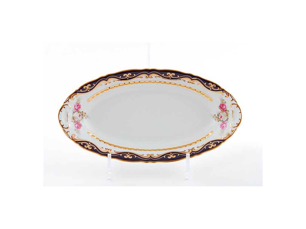 Mísa oválná 39, český porcelán, kobalt, růže, Leander