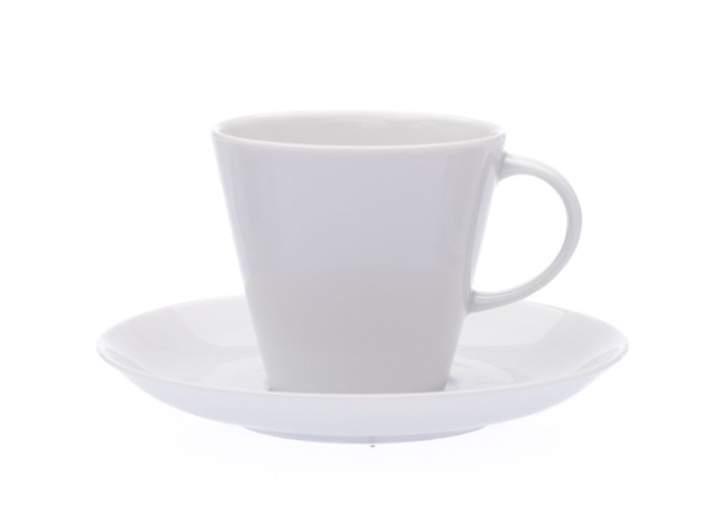 Bílý porcelánový šálek s podšálkem Tom bez dekoru. Český porcelán od prvotřídní domácí značky Thun 1794.