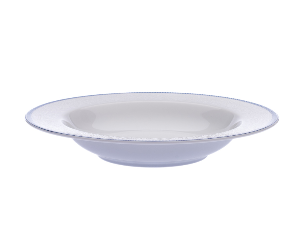 Extra hluboký porcelánový talíř z oblíbené kolekcí Opal (Ella) s dekorem krajky a jemného modrého lemu, který krásně oživí vaše stolování. Talíř je hlubší, má objem 330 ml, a je vhodný pro běžnou českou polévku.