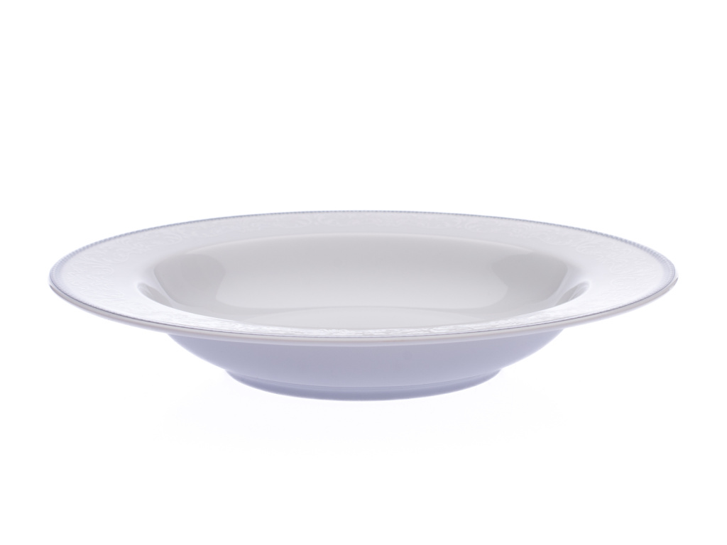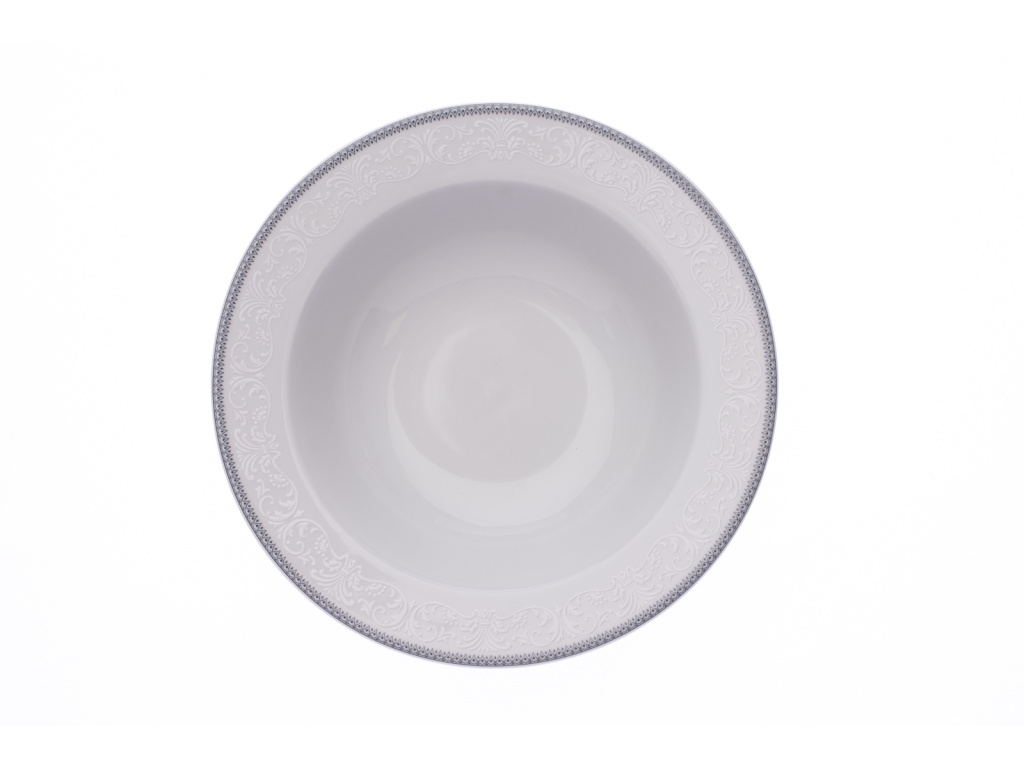 Porcelánový talíř hluboký z oblíbené kolekce Opal s dekorem krajky a jemného šedého lemu, který krásně oživí vaše stolování.