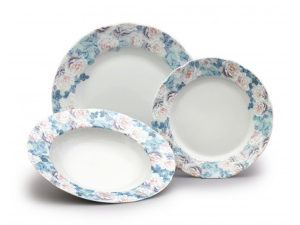 Porcelánová talířová sada s dekorem růží. Obsahuje 18 ks talířů.