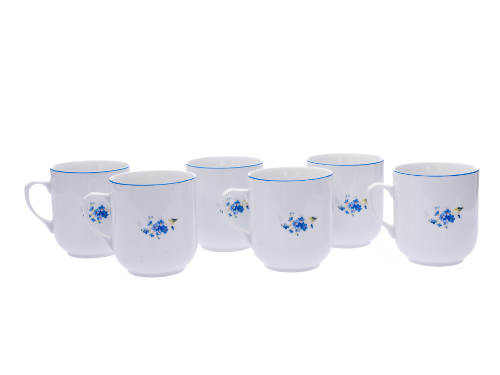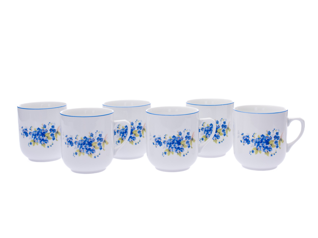 Porcelánová sada hrnků Trojka v klasickém tvaru a dekoru s pomněnkami. Příjemný objem 300 ml je ideální pro každodenní užití.