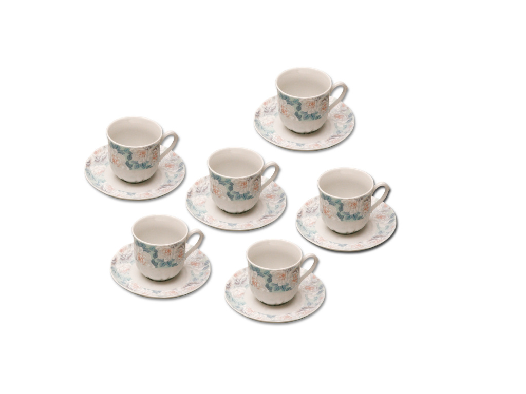 Obsahuje 6 kusů šálků a podšálků na menší kávu.