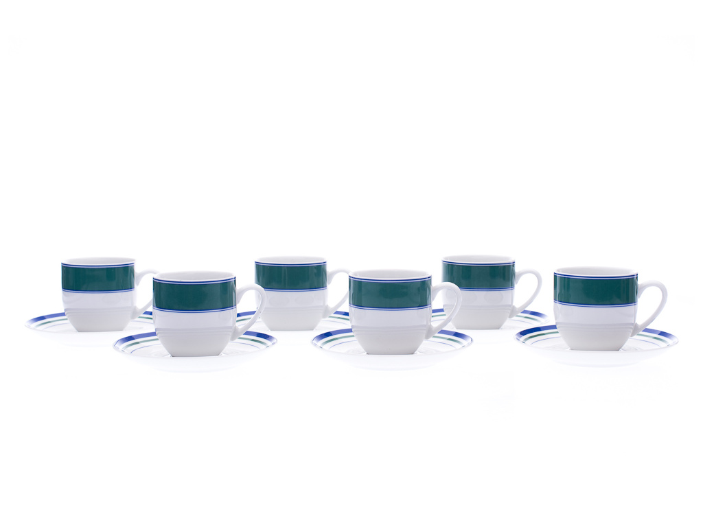 Saphyr, sada šálků, zelenomodrý pruh, český porcelán, Thun,6 d.