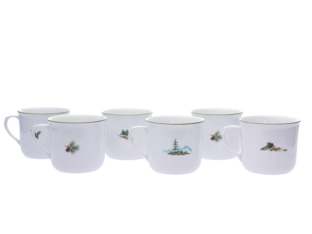 Sada velkých porcelánových hrnků známý pod názvem Vařák v dekoru lesní zvěře a zeleným proužkem. Klasický a oblíbený tvar je ideální volbou pro každého, kdo má rád velké objemy čaje. Prvotřídní český porcelán z Dubí.